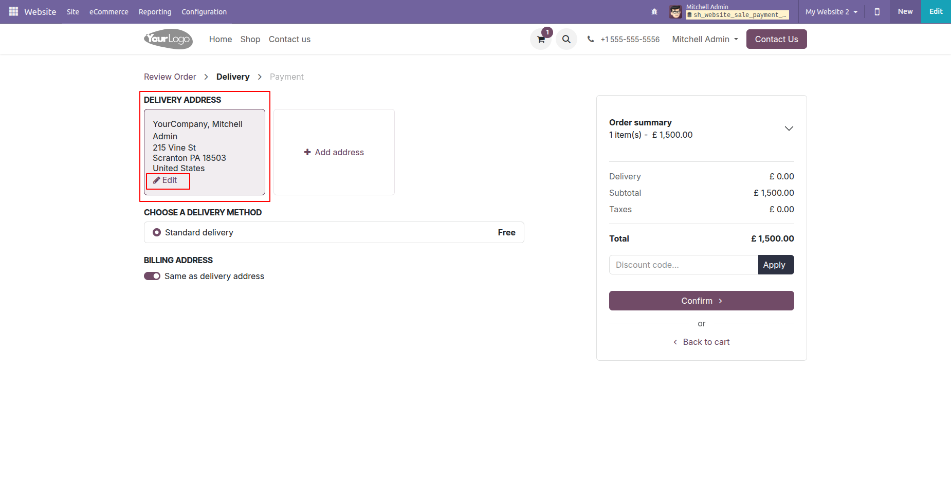 Click on the 'Edit' button to update the address.