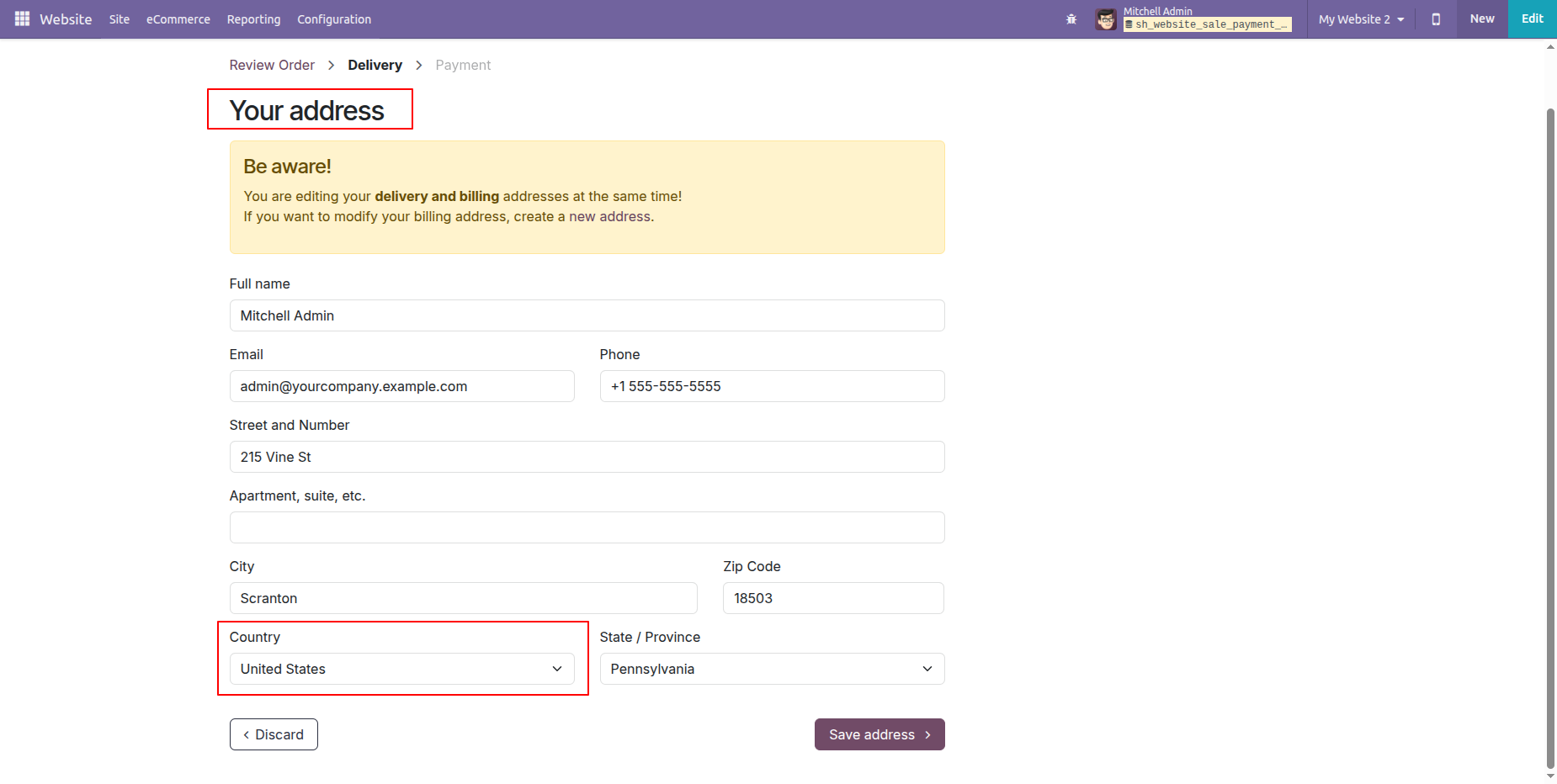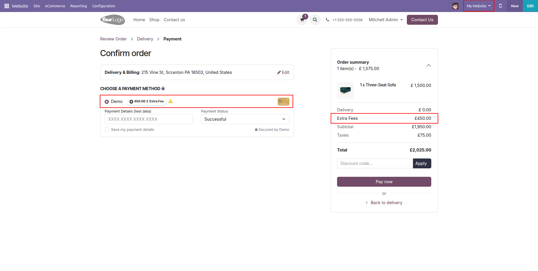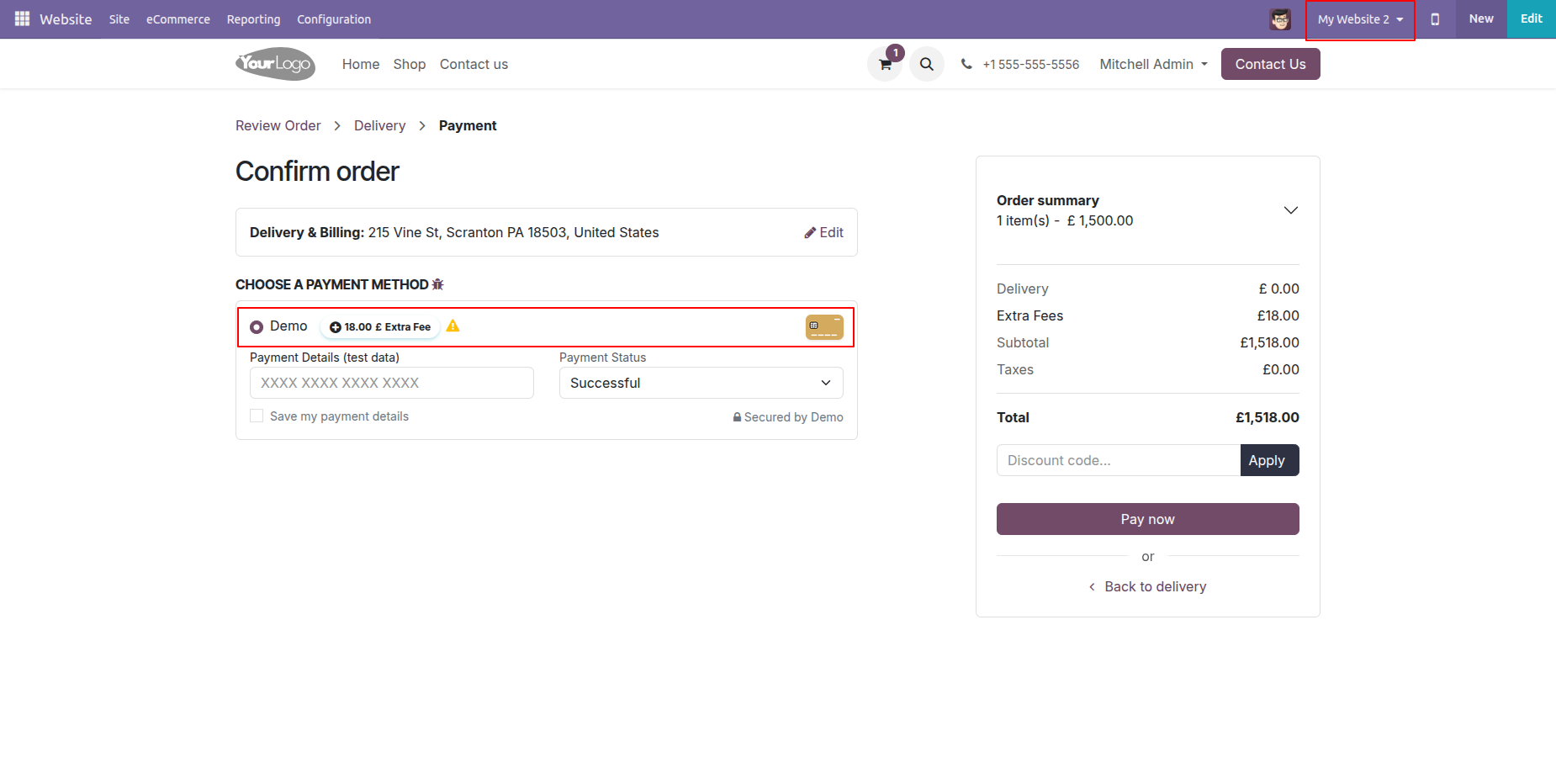 Here, we select the website (My Website 2) that was added in the configuration. As a result, the website-based extra fees are automatically applied.