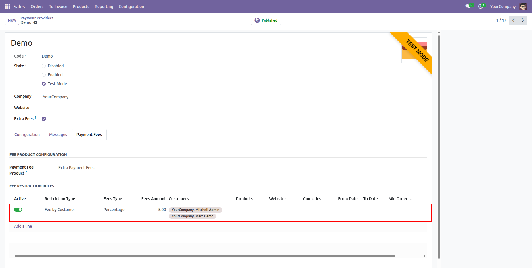 Here, you can see the customer-based extra fees are automatically applied.