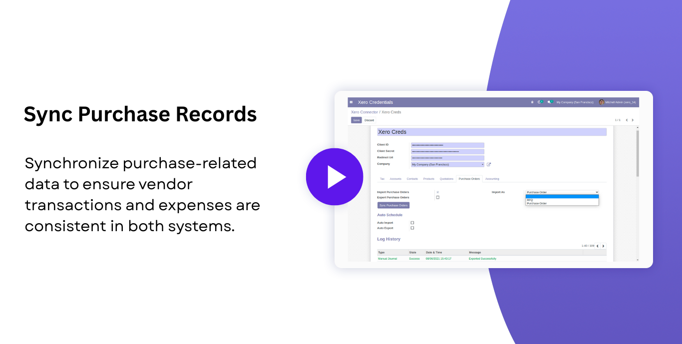Sync purchase orders across Odoo and Xero to maintain vendor and expense visibility.