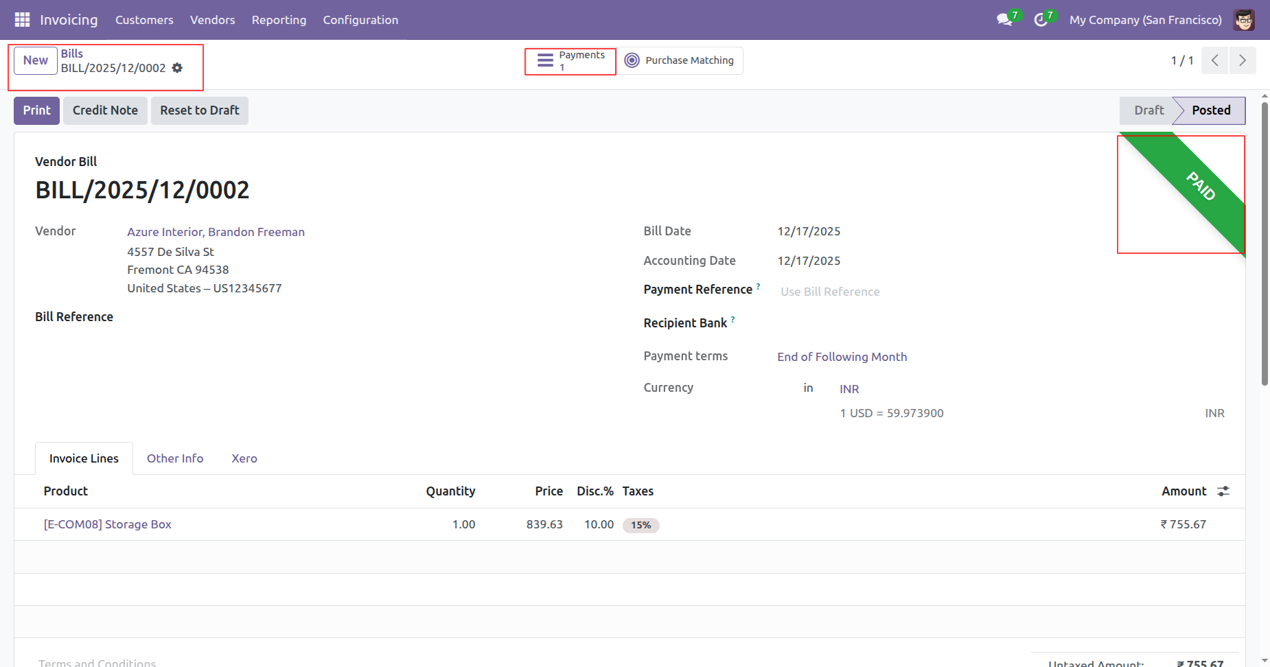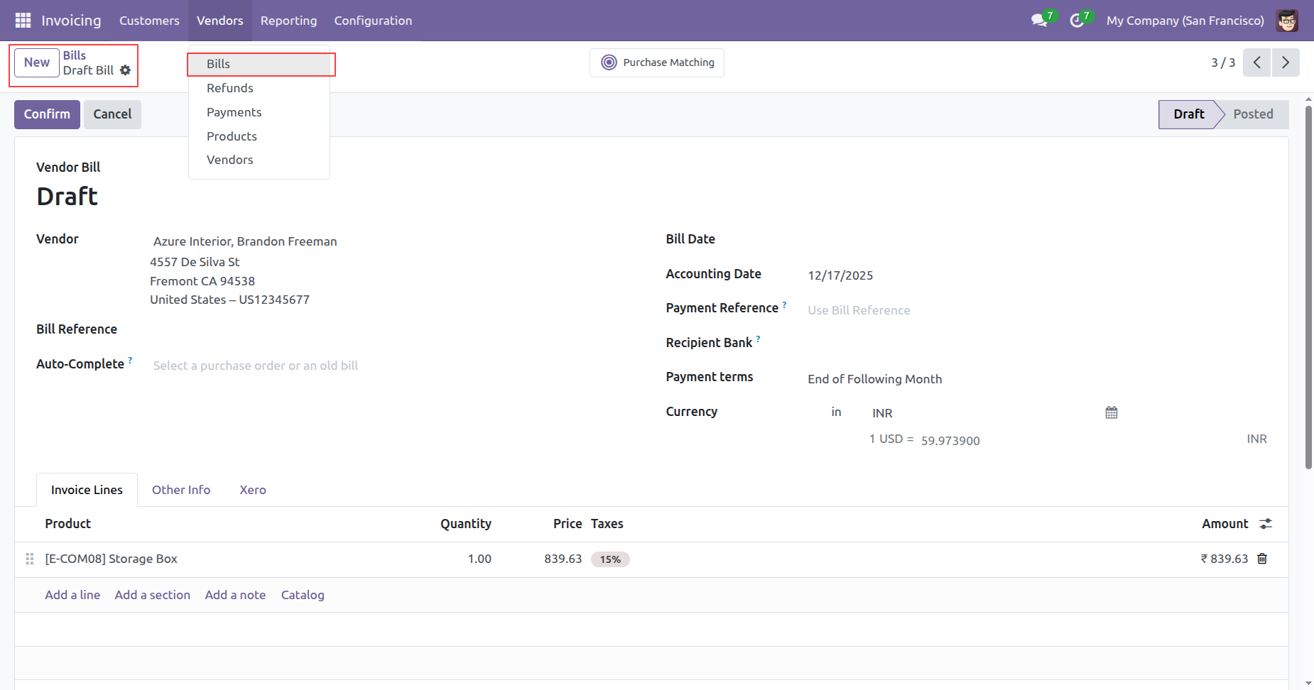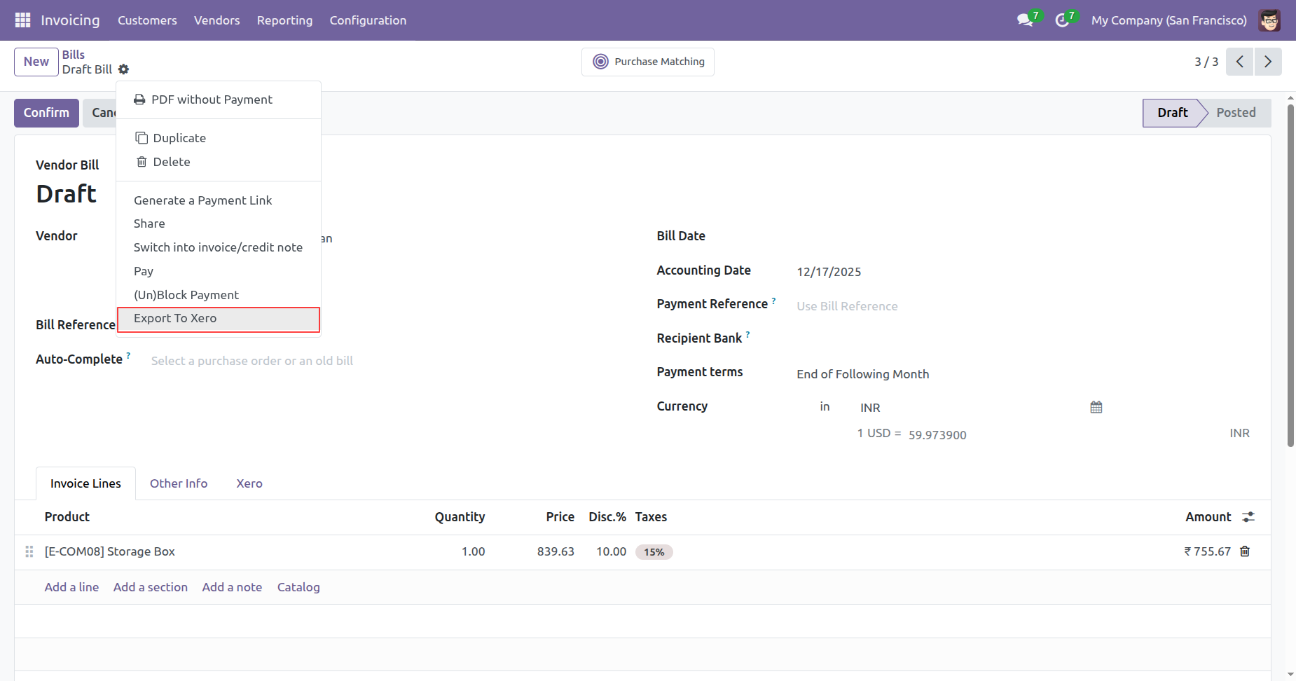 Synchronize vendor bills between Odoo and Xero for payable management.